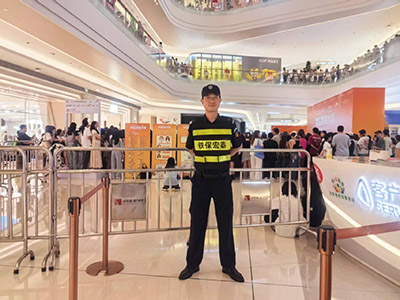 我司深圳市铁保宏泰保安服务有限公司应客户要求派遣数十名安保精英在大型商场进行安保秩序,我司铁保宏泰安保精英出色完成此次护卫任务,一致获得客户方的满意。